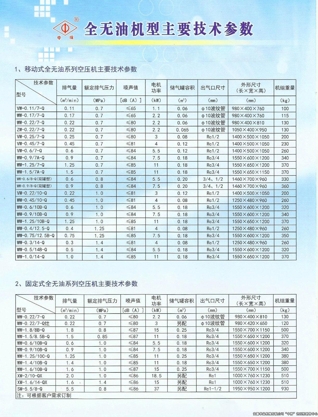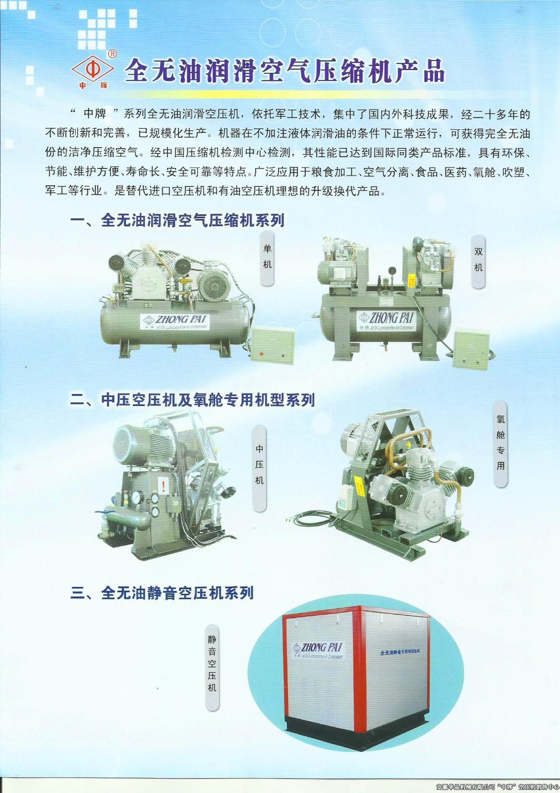 全无油空压机特点:机器在不加注液体润滑油情况下,可实现24小时正常运转,获得完全无油的洁净压缩气体,具有环保、节能、维护方便、寿命长、安全可靠等优点,广泛应用于粮食加工、空分、食品、医药、氧舱、吹塑、电子、军工等行业。